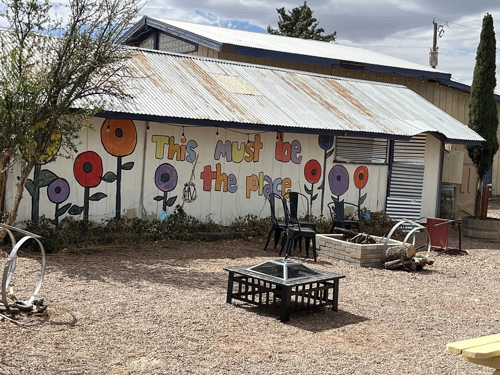 Just down the road from Rune Wines, you'll find a completely different vibe at Arizona Hops and Vines—a colorful, quirky, and unforgettable wine destination in Sonoita. With an eclectic, hippie-inspired atmosphere, this winery is full of playful charm. Murals cover the buildings, heart-shaped sculptures dot the grounds, and quotes from Jack Kerouac and Frida Kahlo decorate the walls. It’s a place where art, laughter, and creativity are just as important as the wine.