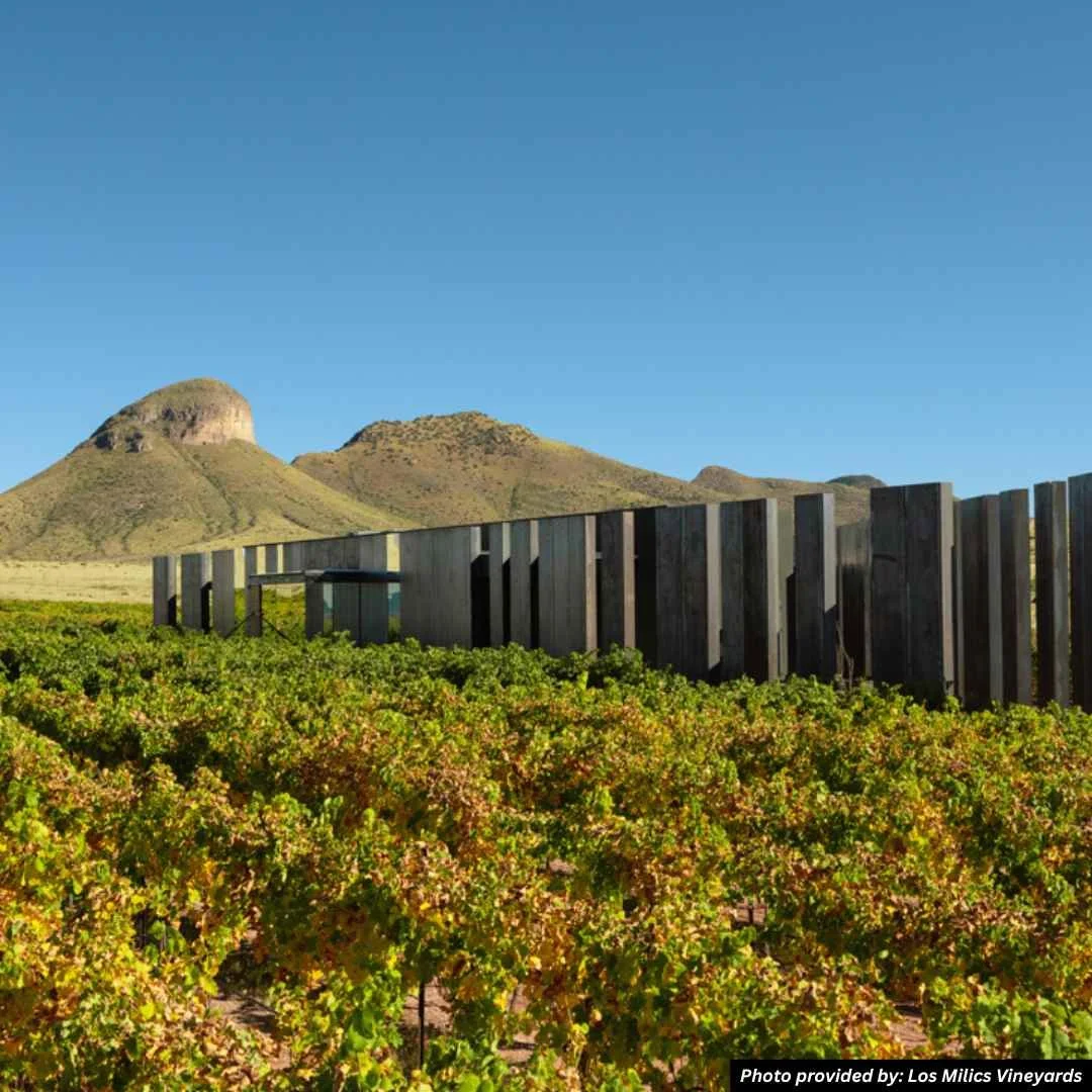 As you approach Los Milics Vineyards, the sleek, contemporary architecture feels more like a modern art installation than a traditional winery. Set against the striking backdrop of the Mustang Mountains and surrounded by vines, this estate stands out as the most sophisticated and design-forward destination in the Sonoita/Elgin wine region.