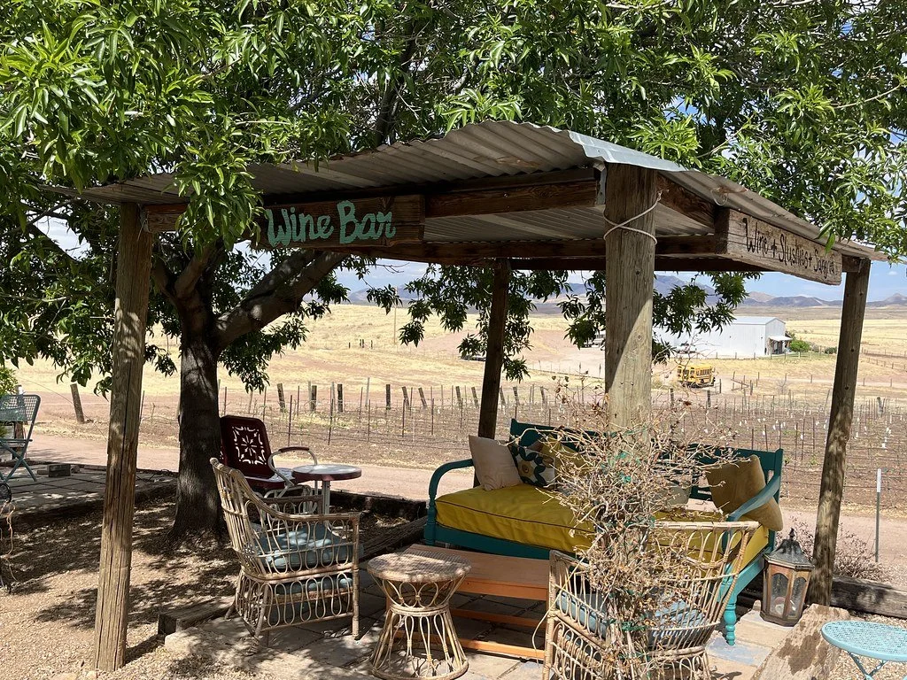 Arizona Hops and Vines is a colorful, quirky, and unforgettable wine destination in Sonoita. With an eclectic, hippie-inspired atmosphere, this winery is full of playful charm. Murals cover the buildings, heart-shaped sculptures dot the grounds, and quotes from Jack Kerouac and Frida Kahlo decorate the walls. It’s a place where art, laughter, and creativity are just as important as the wine.