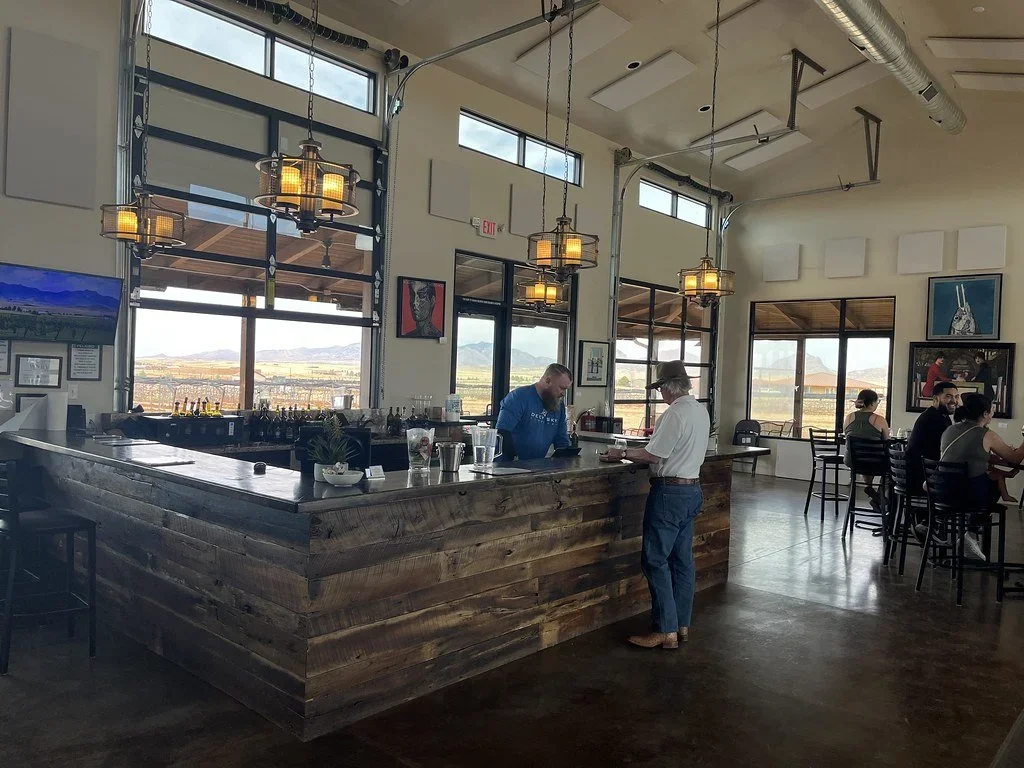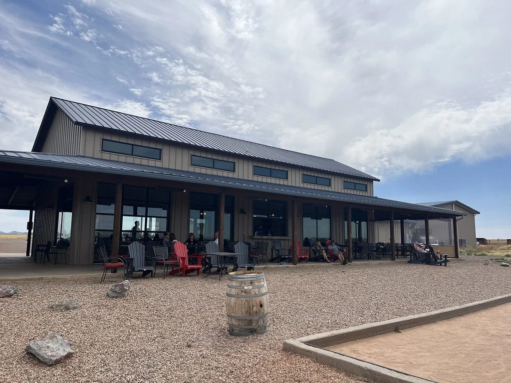 The Elgin tasting room offers a relaxed and scenic setting. With large windows framing vineyard views and outdoor seating nestled among the vines, it’s the perfect spot to enjoy a glass of wine. Guests are encouraged to bring a picnic, unwind, and take in the serene high desert surroundings.