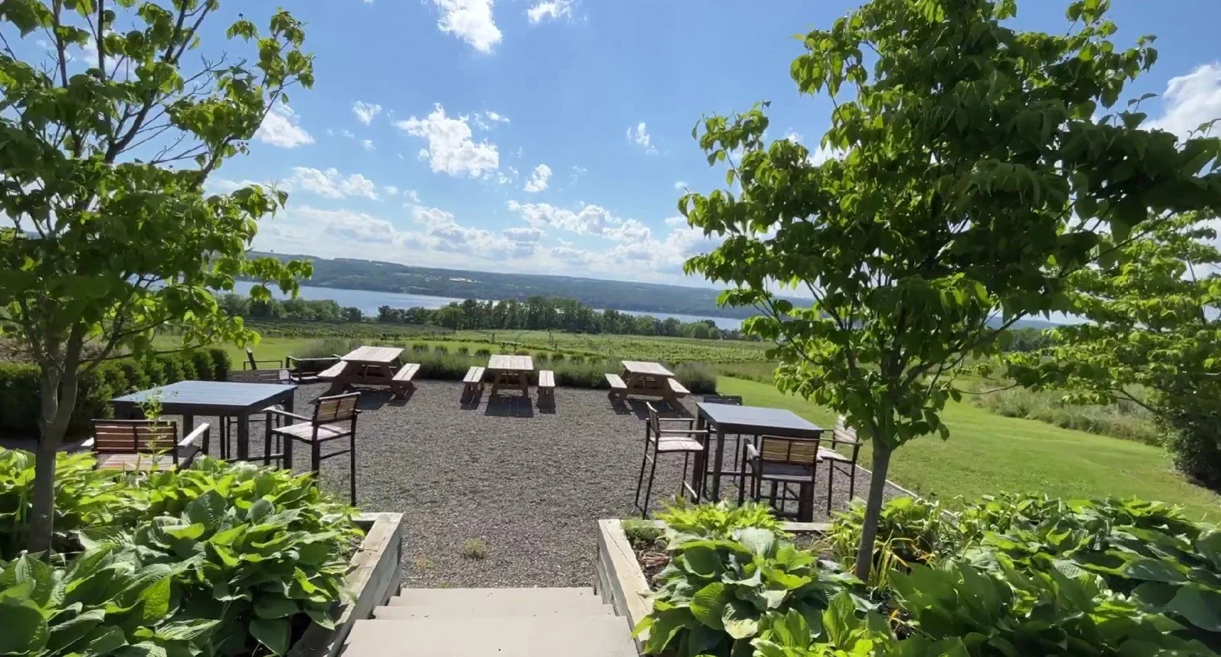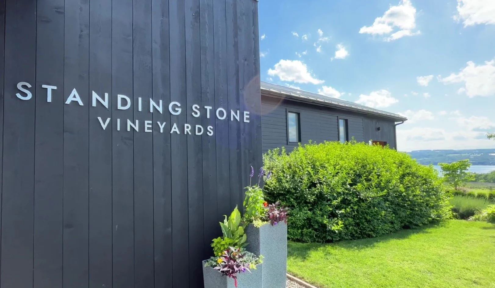 On the east side of Seneca Lake, Standing Stone Vineyards offers a modern tasting experience with a warm, welcoming feel and a beautiful deck overlooking vineyards and the lake—making it one of the most scenic and relaxing stops on the Seneca Lake Wine Trail.